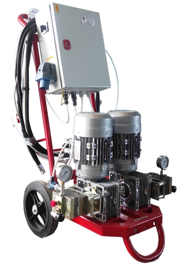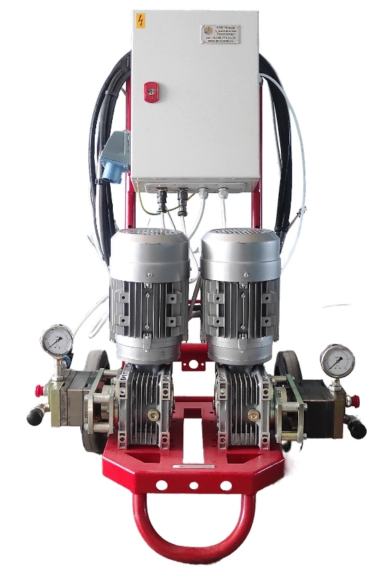 Включает в себя дозирующий насосный агрегат, подающий компоненты в нужной пропорции к устройству гомогенного перемешивания НСТ К-35/С. Данный смеситель оснащен статическим миксером, в котором непосредственно происходит перемешивание компонентов.