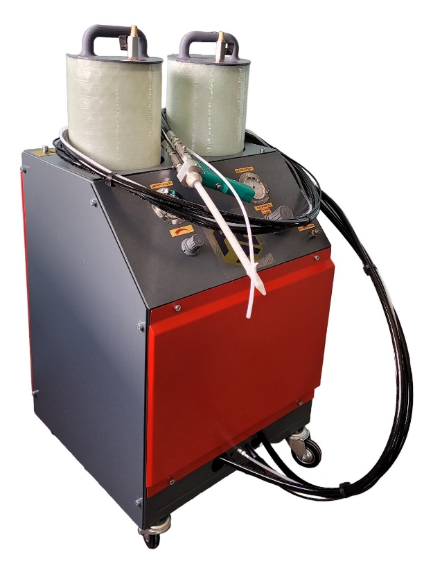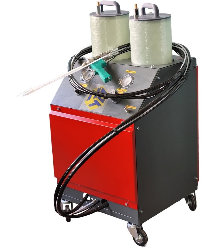 Для начала работы достаточно подключить сжатый воздух от компрессора и заполнить компонентами 20-литровые расходные емкости.